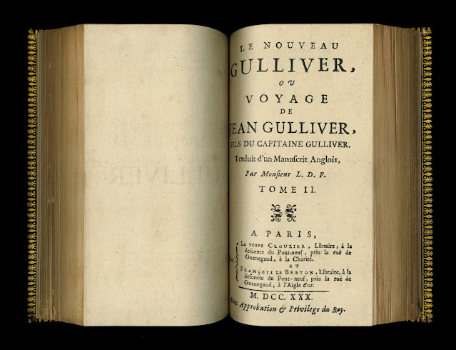 Les Voyages de Gulliver a paru sous le voile de l'anonymat à Londres à la fin de l'année 1726 sous le titre original : Travels into Several Remote Nations of the World. In Four Parts. By Lemuel Gulliver, First a Surgeon, and then a Captain of Several Ships abrégé en Gulliver’s Travels. Ce célèbre roman satirique a été écrit en 1721. La version de 1726 qui parait en Angleterre est censurée et modifiée. En janvier 1727 une première version française paraît à La Haye mais ce n'est pas cette version qui sera retenue pour les éditions suivantes et reconnue par la postérité.